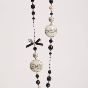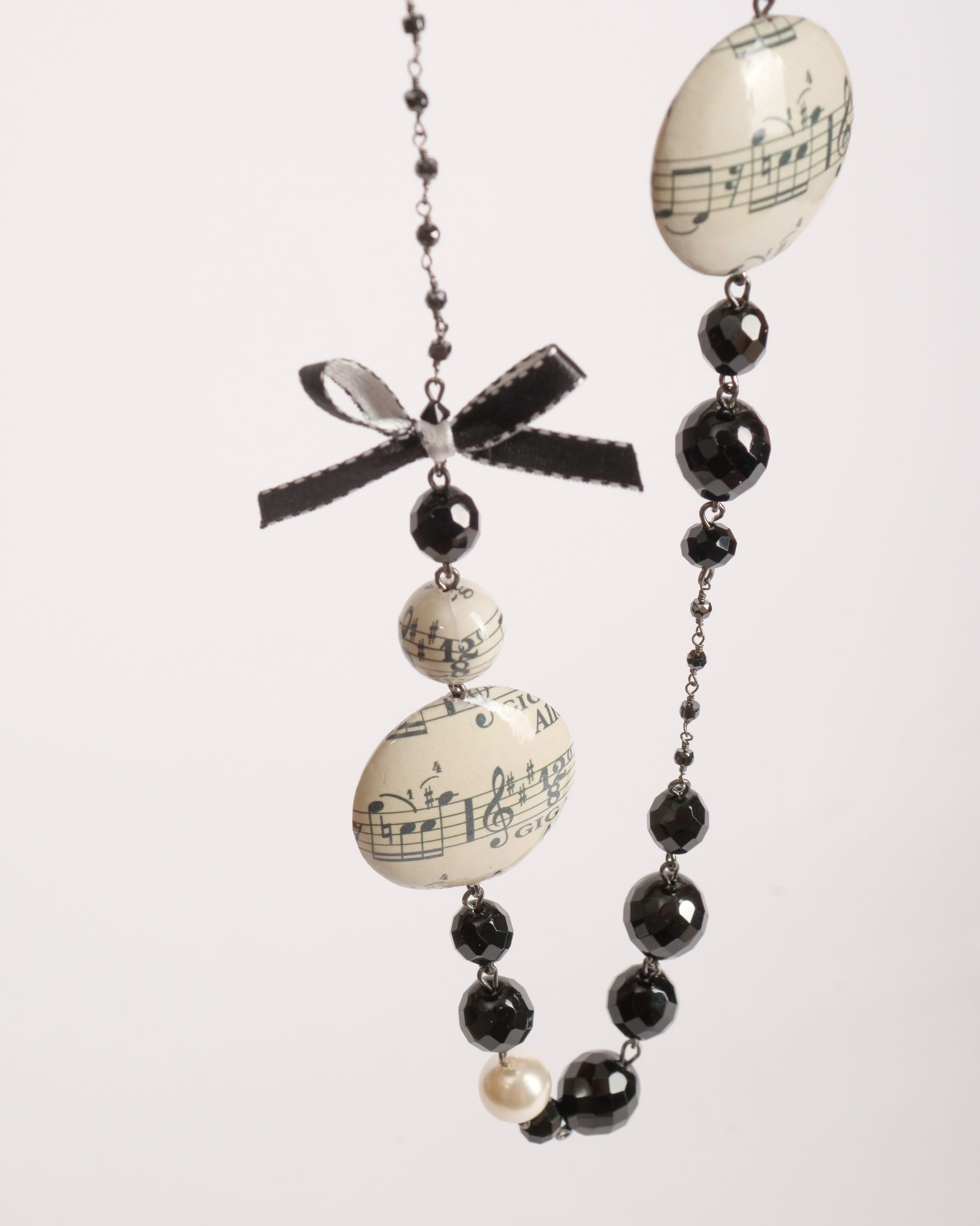 Collana lunga con decori in cristallo, madreperla, resina e legno laccato