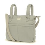 Borsa organizer per il cambio del bebè da passeggino, con manici stacca-attacca pratici e resistenti, due utilissime tasche esterne e una comoda tracolla. Chiusura con cerniera.