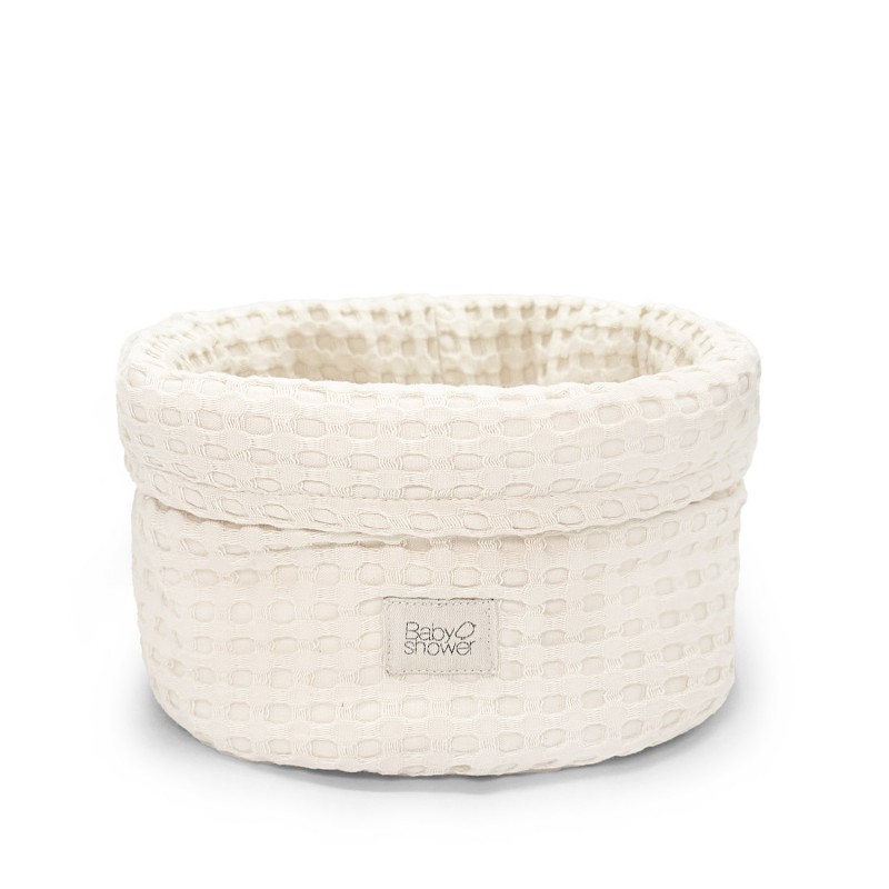 Cestino rotondo in nido d’ape di cotone avorio. Ideale per i pannolini o per i prodotti del bagnetto.