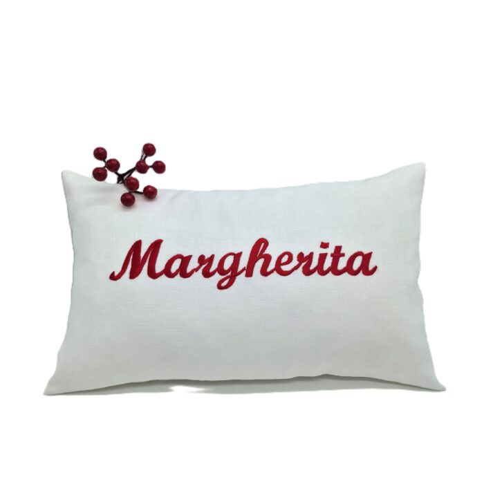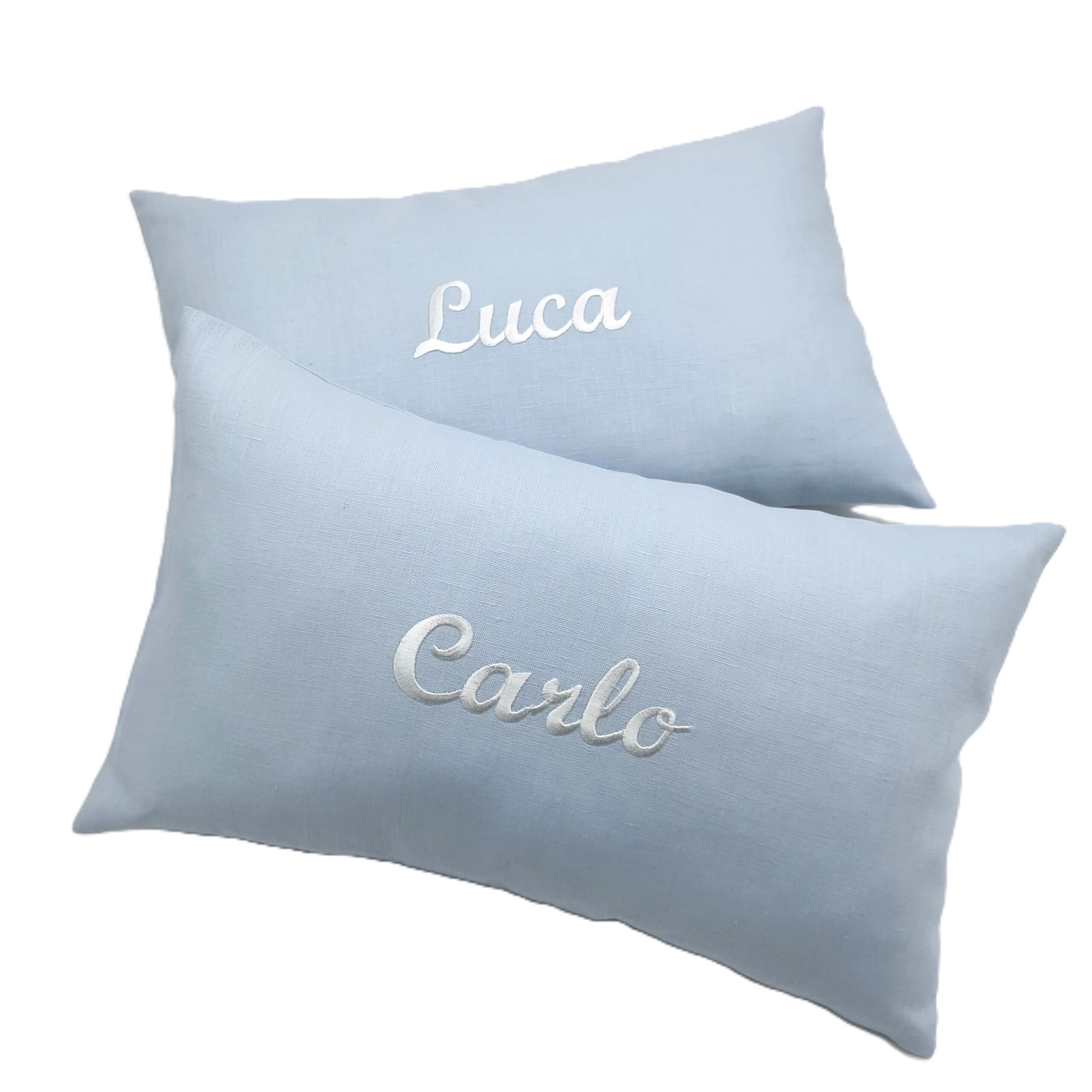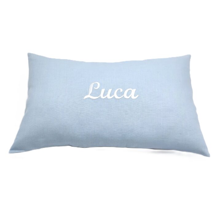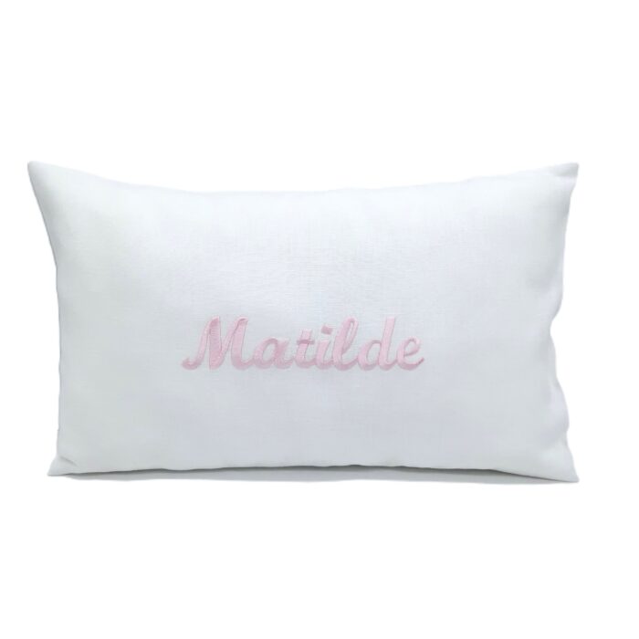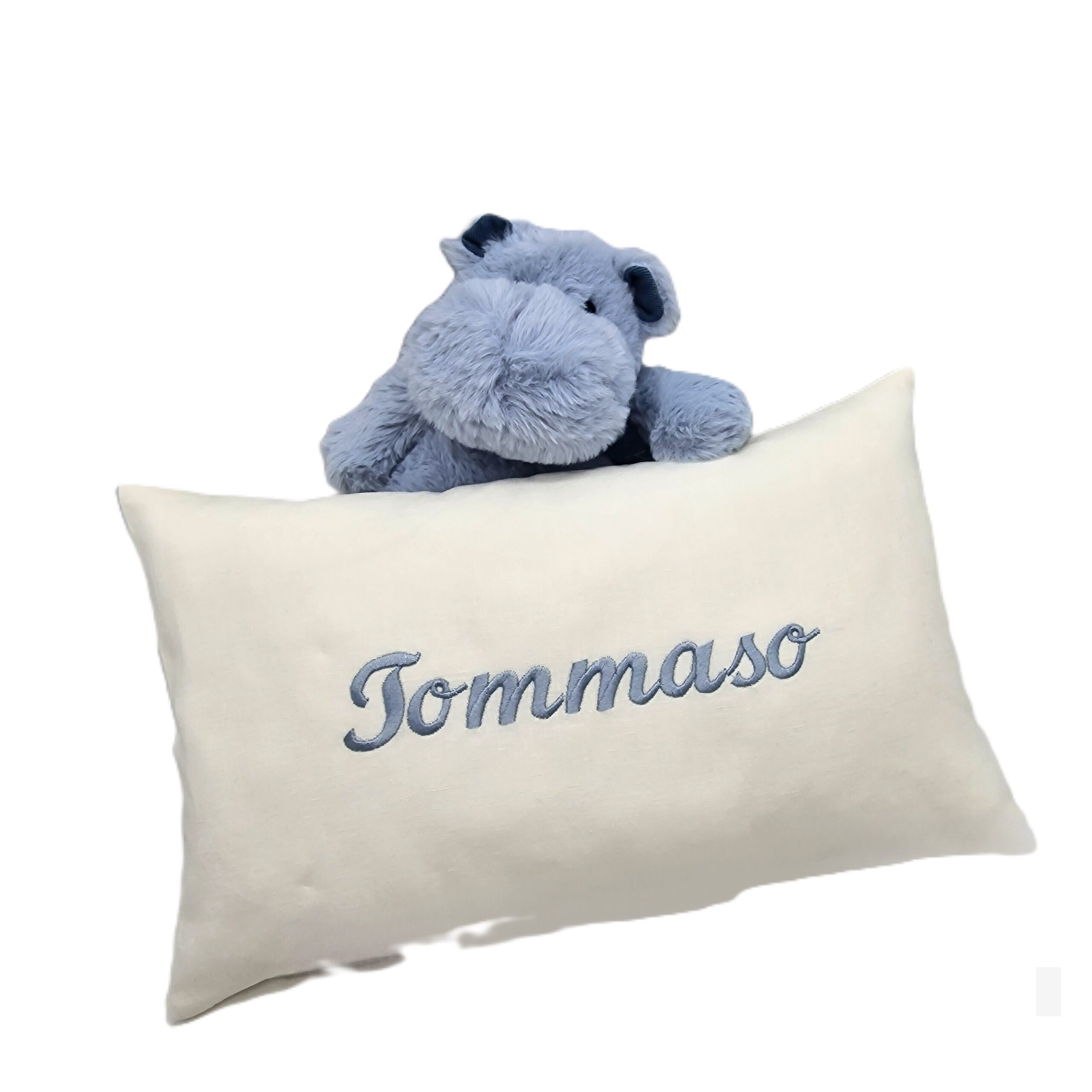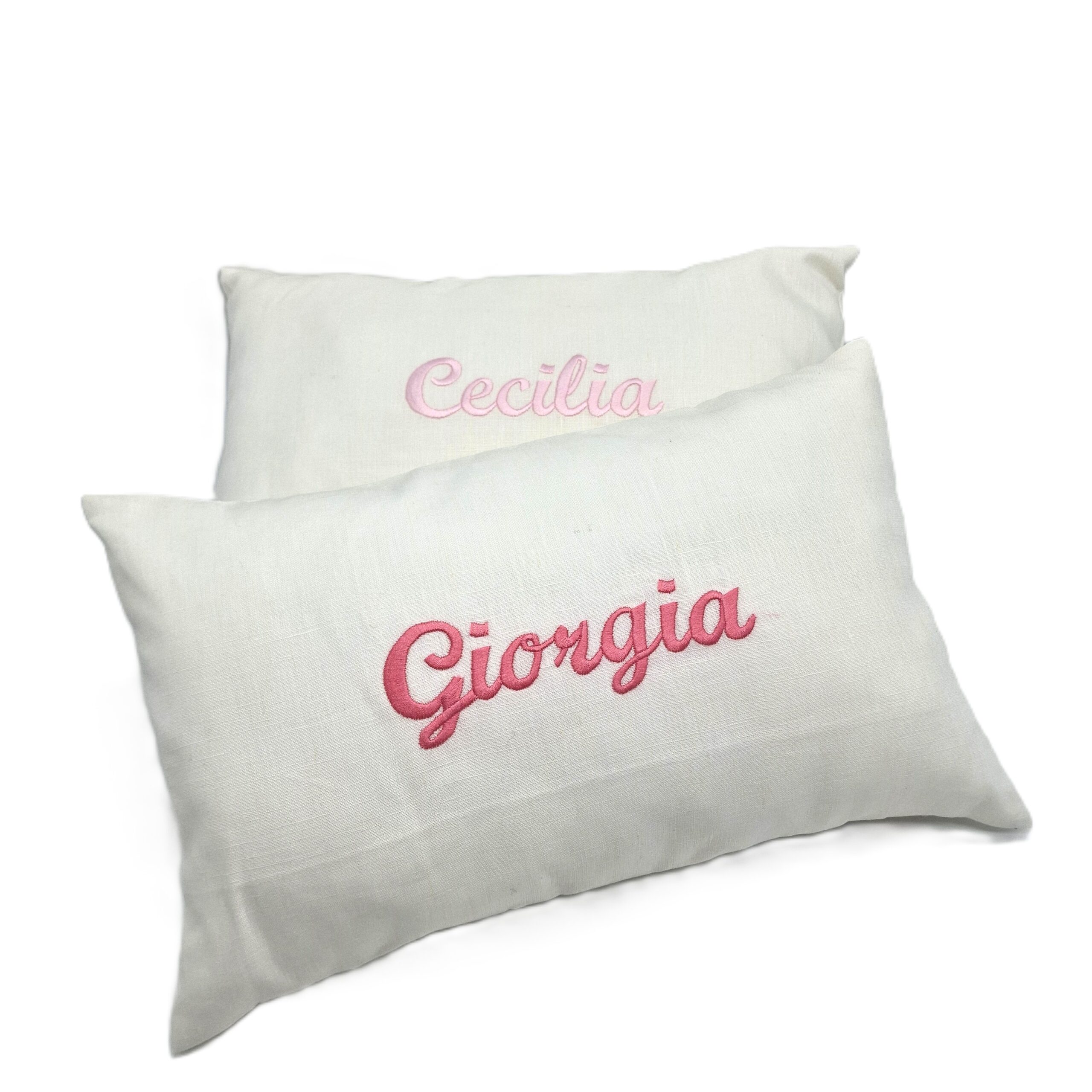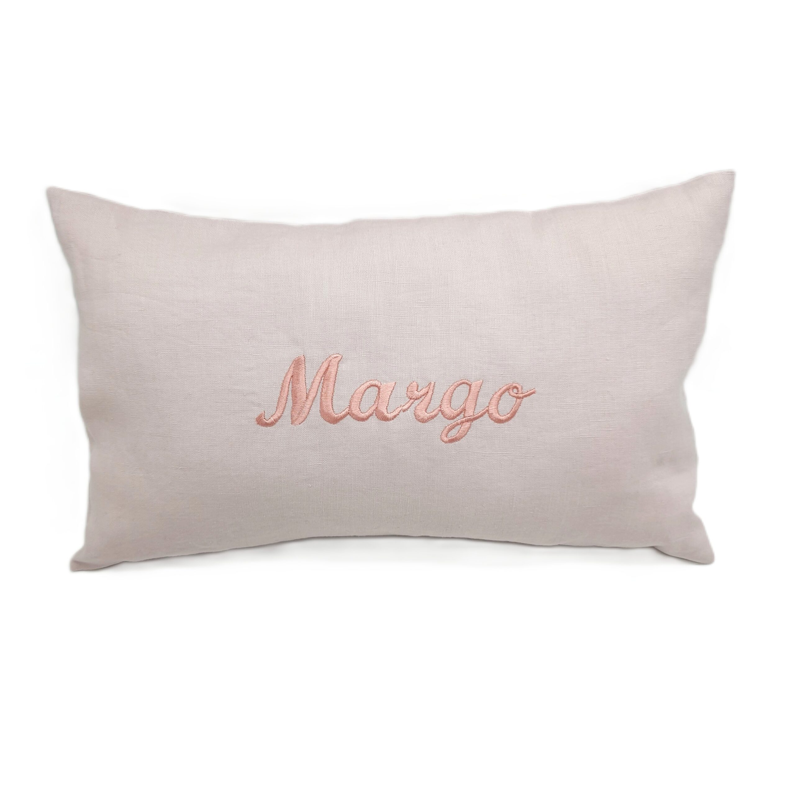 CUSCINETTO DECORATIVO in lino con ricamo nome – Lyda Turck