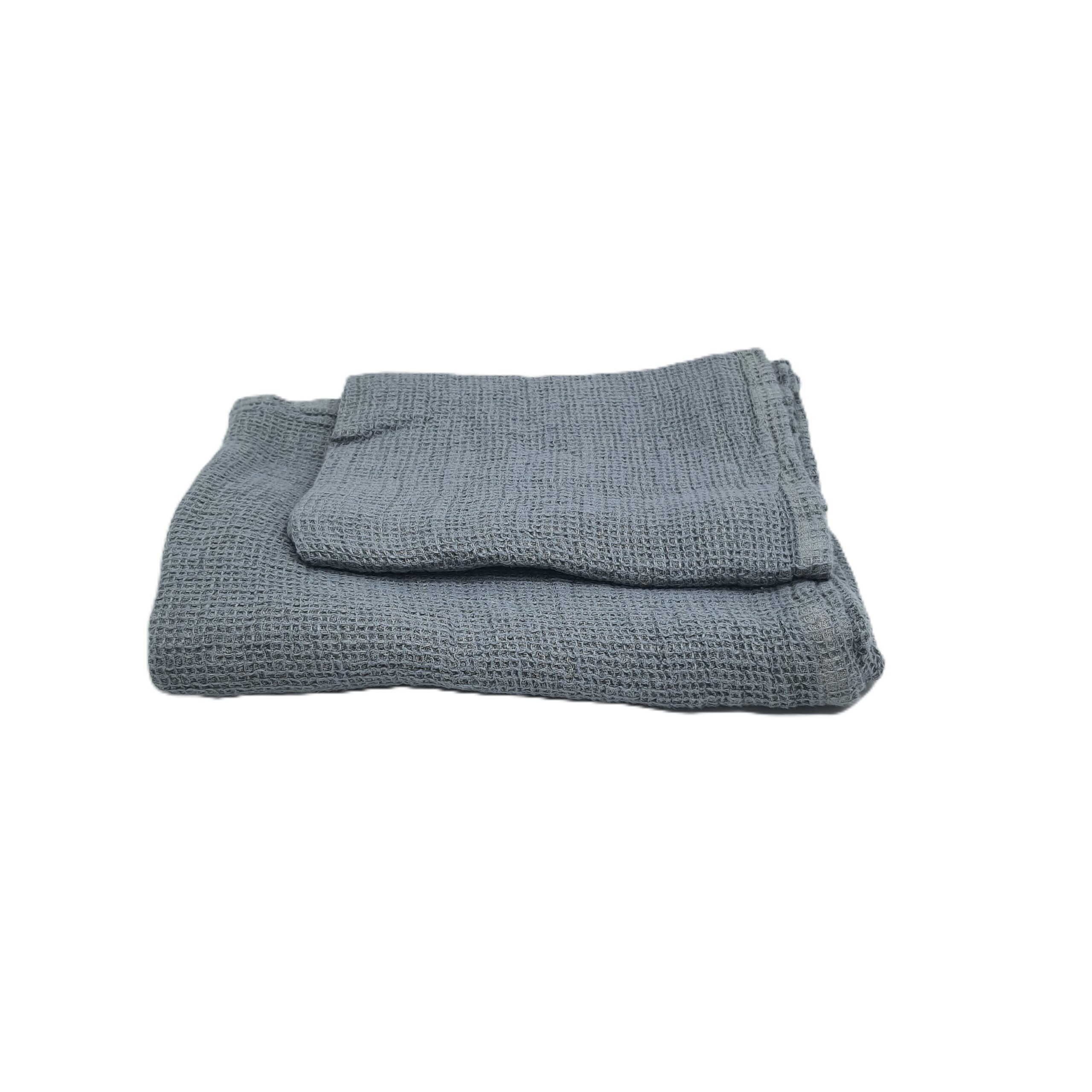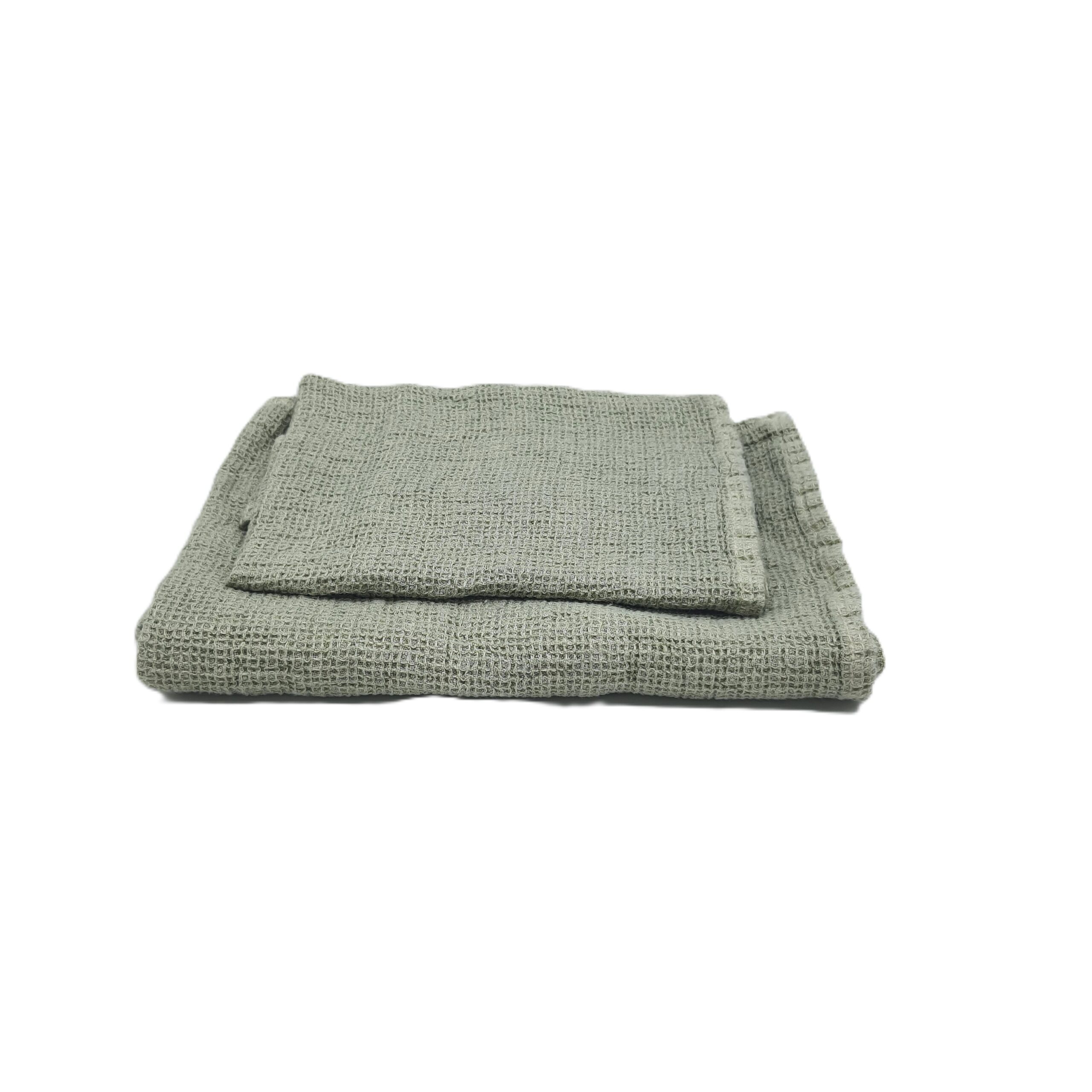 Coppia asciugamani (telo viso + telo ospite) in micro nido d’ape.