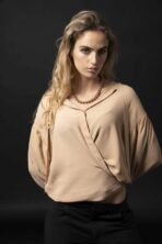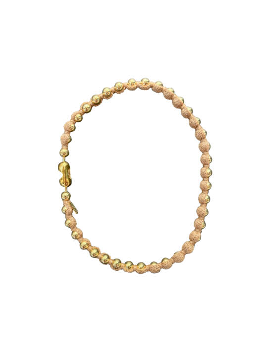 Girocollo in cachemire sui toni del beige rosato con eleganti sfere dorate