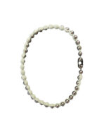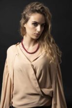 Girocollo in cachemire, disponibile sia sui toni del bordeaux sia sui toni del verde salvia, con eleganti sfere in rutenio nero