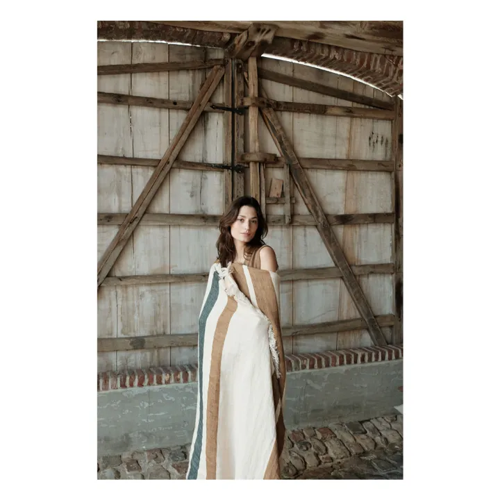 Telo bagno / telo mare in 100% lino realizzato a telaio, rifinitura frangette.