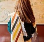 Telo bagno / telo mare in 100% lino realizzato a telaio, rifinitura frangette.