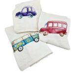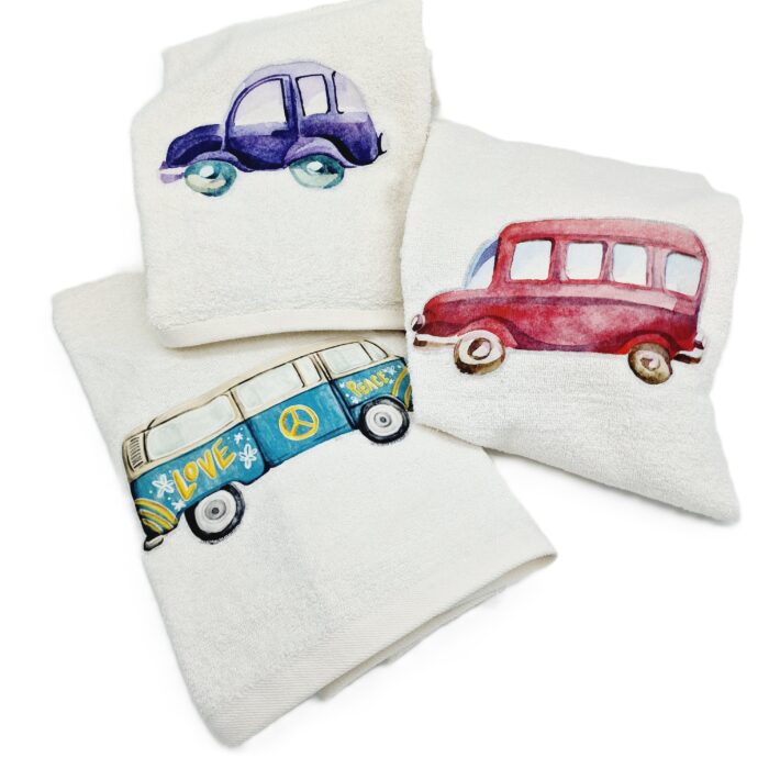 COPPIA ASCIUGAMANI in spugna “macchinine” – panna – Lyda Turck