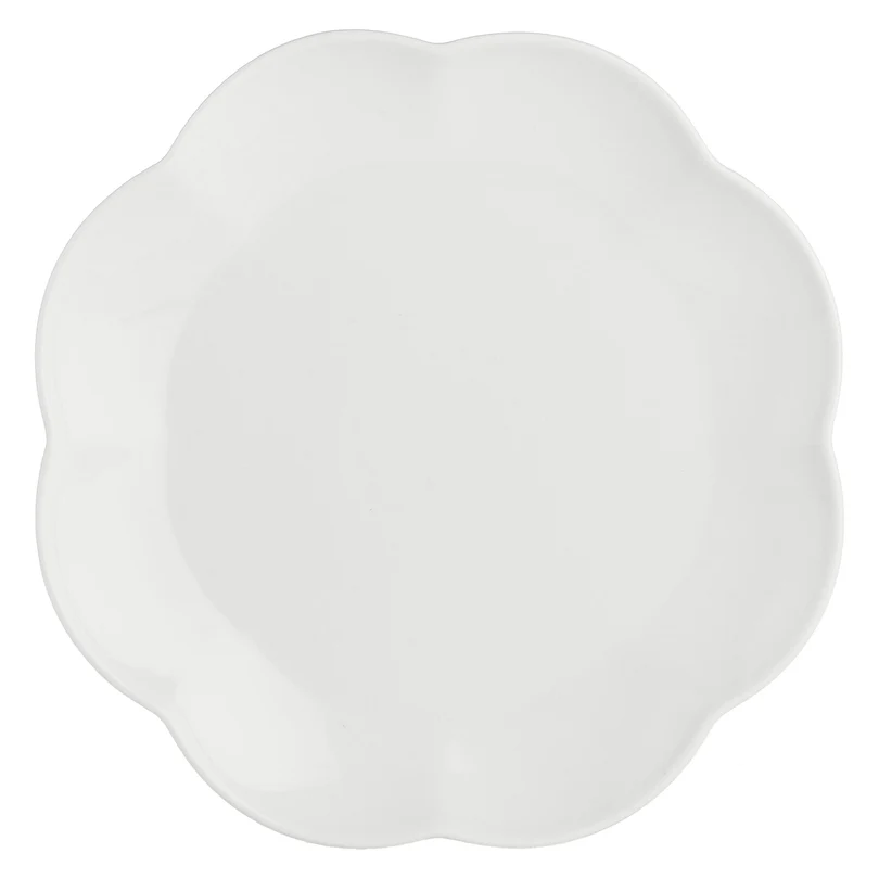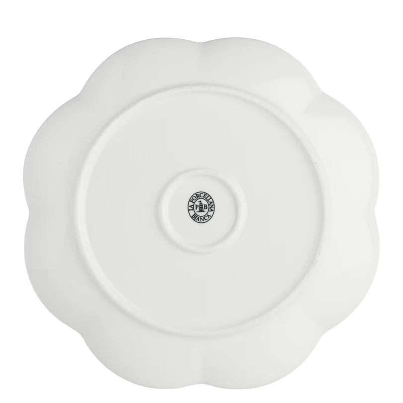 Piatto piano in porcellana bianca, a forma di fiore.