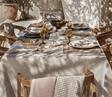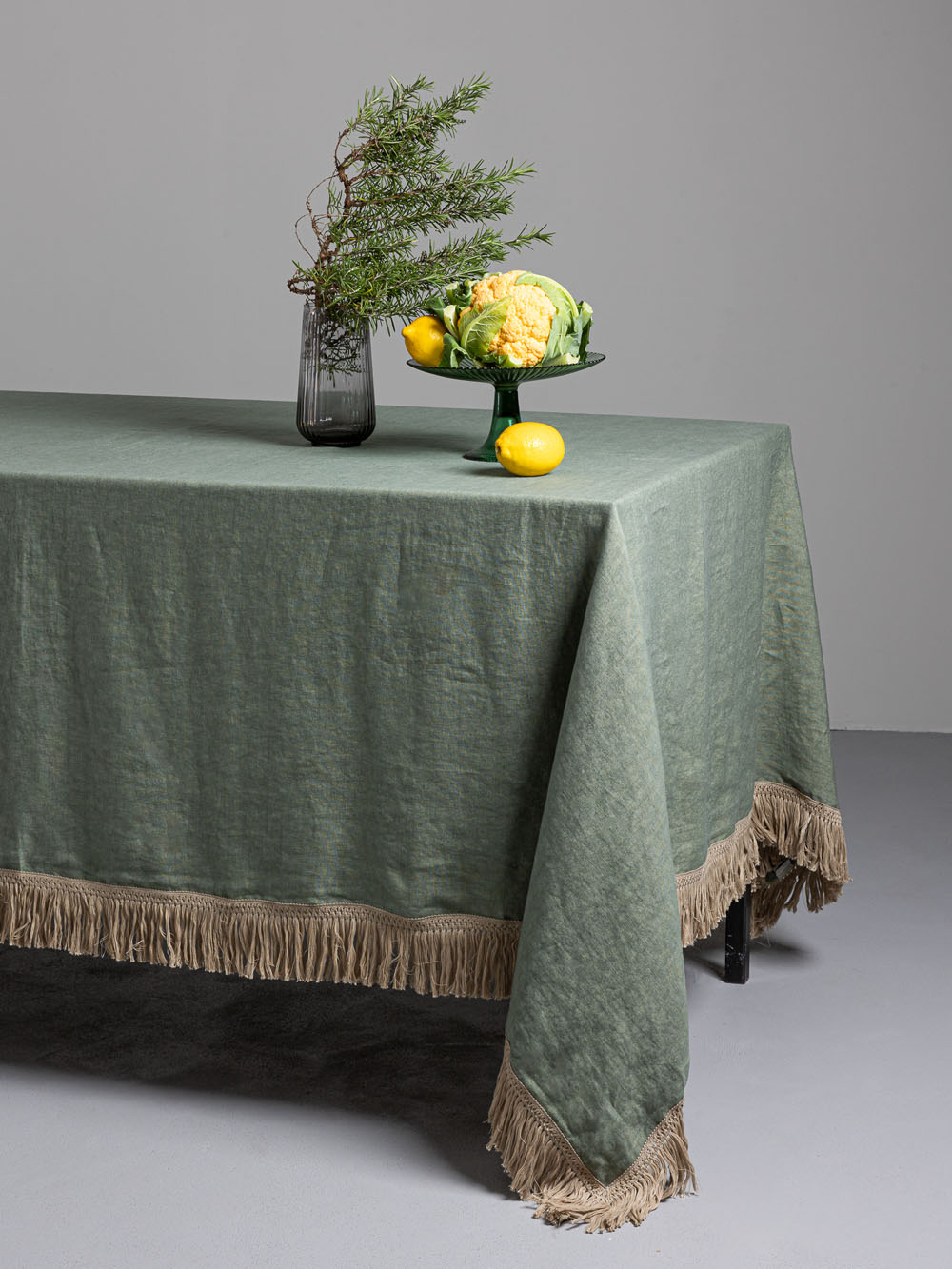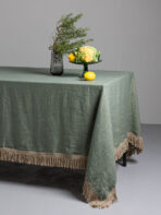 Tovaglia / copritavolo in panama di cotone con finitura passamaneria frange.
