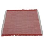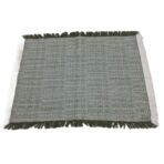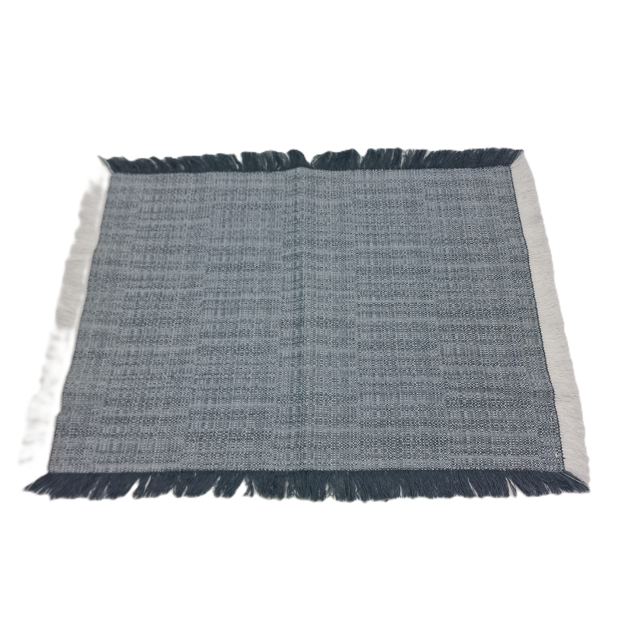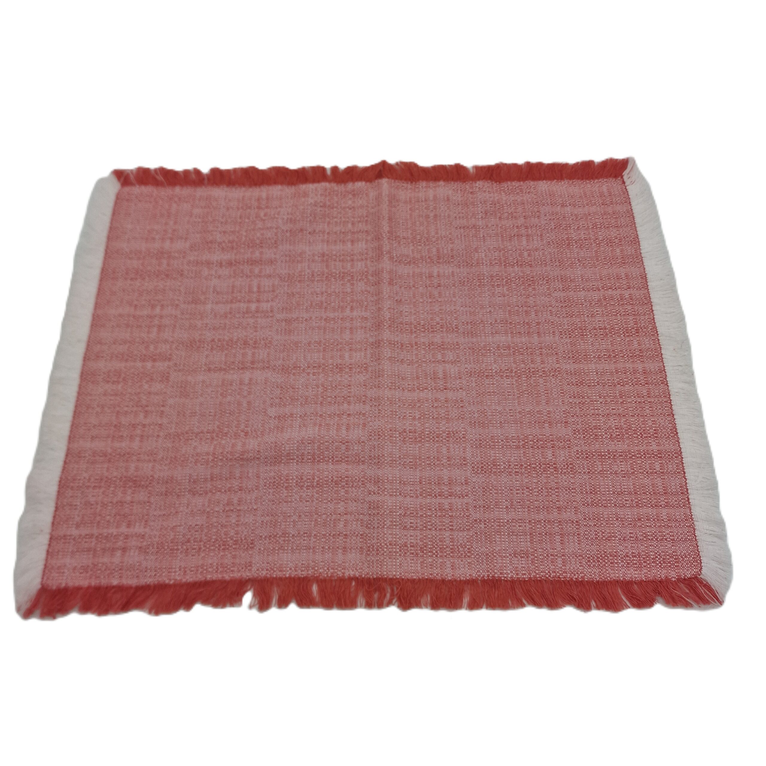 Tovaglietta americana realizzata a telaio, trama e ordito bianco/colorato, sfrangiata su 4 lati.
