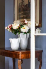 Vaso da fiori in vetro colore rosso.